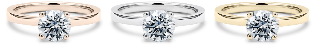 White gold is just as popular for its understated, elegant appearance. Rose gold is also very attractive and lends the ring a unique look – or for an engagement ring that almost seems to glow from within, consider platinum.
